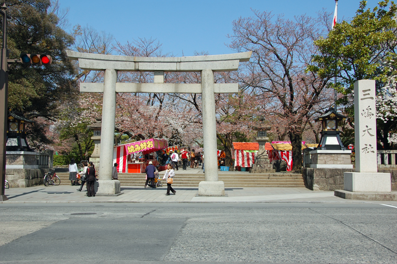 元の官幣大社で、その創建は極めて古く、此の地に鎮座し、神の御名により三島の地名ともなった。
